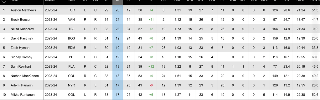Zach Hyman – Tied for 4th in NHL with 19 G